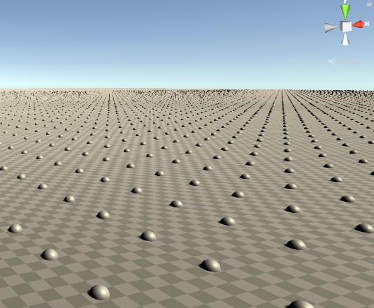 First thing I want to do is to put a grid of sphers on the terrain, on the same height as their world position on the terrain.